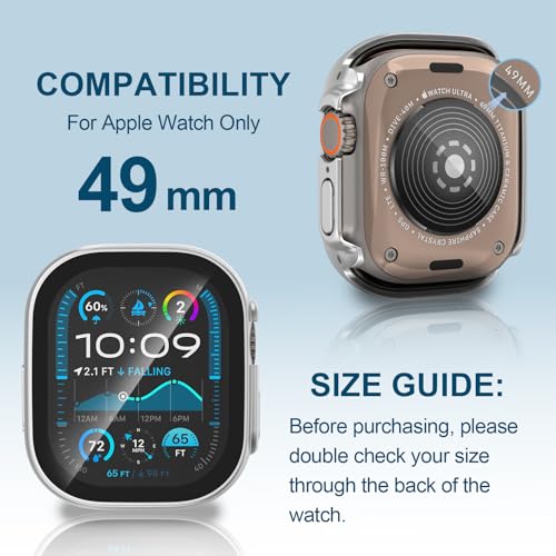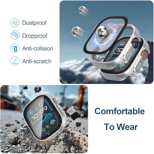 - 【2 In 1 Case】Durable ultra-thin hard PC bumper and built-in clear tempered glass screen protector,full coverage,designed to protect the exterior surface of your watch without compromising its usability.