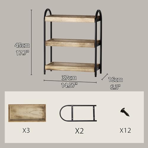 - 【Commercial-Grade Durability】:Combines premium wood with powder-coated steel frame. Each tier holds 17 lbs - safely stores items. Child-safe rounded edges.