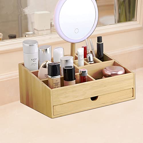 Yimeka - Makeup Organizer Bamboo Bathroom Accessories Vanity Countertop Storage Cosmetic Display Case Suitable for Bedroom Closet Kitchen Vanity Desk