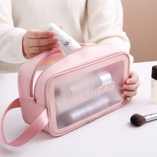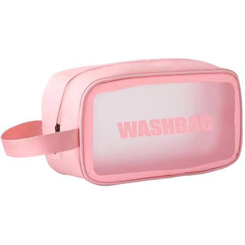 YIMIKE - Travel Toiletry Bag,Clear Makeup Bag,Cosmetics Bag,Transparent Skin Care Bag,Waterproof & Draining Make up Bags,PVC Toiletry Organizer Thickened Wash Bag for Women Men (Small-Pink)