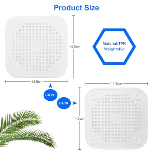 - 【Scientific Design】The size of this drain cover is 14.5 * 14.5 cm (5.7 * 5.7 inches). It is equipped with four integrated suction cups, which can help the drain cover to be better fixed on smooth surfaces.