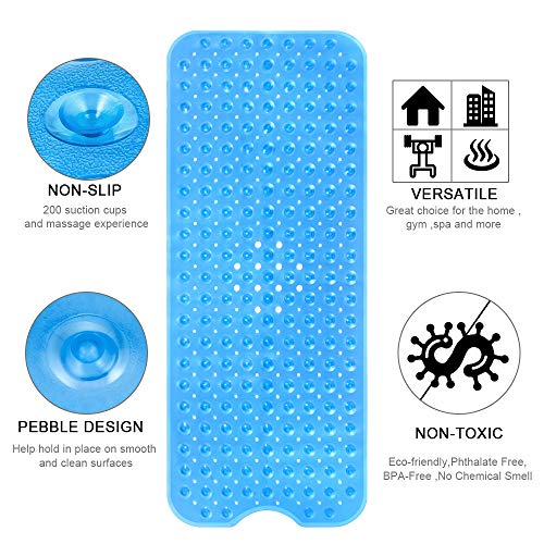 YINENN - YINENN Non-Slip Bath Tub Shower Mat with Suction Cups and Drain Holes, 40x16in, Blue