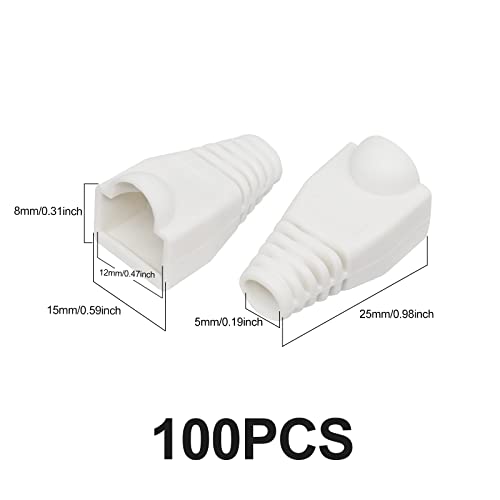 YIOVVOM - غطاء موصل كيبل ايثرنت ار جيه 45 من البلاستيك الناعم لتخفيف الضغط كات 5 اي 6 100 قطعة كوبابا ابيض لحاسوب شخصي