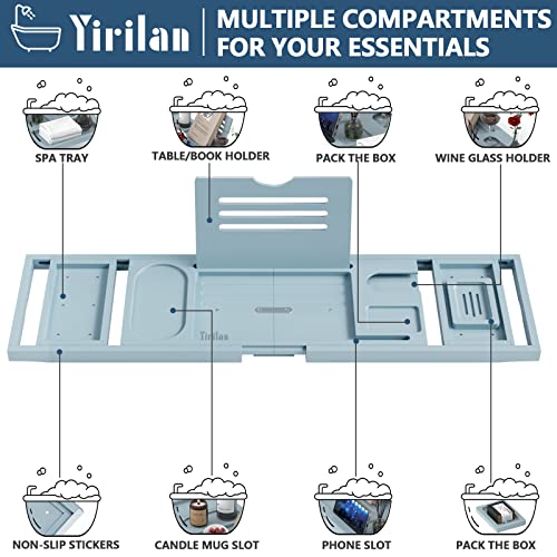 - Multifunctional Bathroom Tray: Yirilan bathroom tray has multiple functional positions such as wine glasses, candles, mobile phones and toiletries. The bookends can hold iPads, tablets and books to meet your different needs