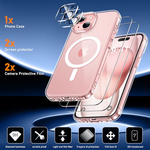 - [Compatibility] This ultra-clear magnetic case with 2 tempered glass & 2 camera protector protectors, is only compatible with iPhone 15 (6.1 inches), please confirm your phone model before purchasing