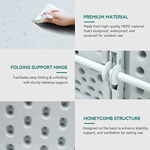 - Easy to Clean: This folding picnic table top is covered with a waterproof resin surface that’s weather-resistant and can be easily cleaned with a damp cloth; You can enjoy gatherings with your family, friends, and neighbours regardless of weather conditions