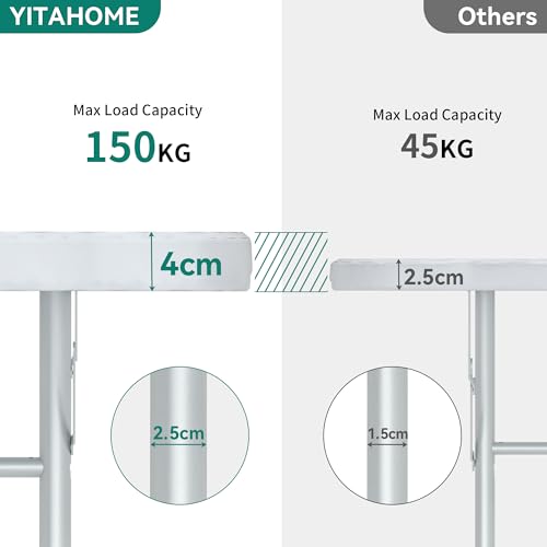YITAHOME - YITAHOME 122cm Round Folding Table for Outdoor/Indoor, Heavy Duty Folding Plastic Table w/Thick Table Top and Sturdy Metal Frame, Ideal for Party Picnic Camping BBQ Events, White