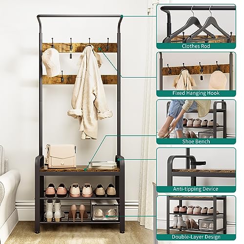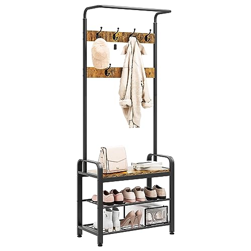 - Yitahome Coat Rack Stand With Shoe Storage, Industrial Hall Tree With 7 Hooks Free Standing Coat Stands With Bench Entryway Storage Shelf For Hallway Living Room Bedroom, Metal Frame, Rustic Brown