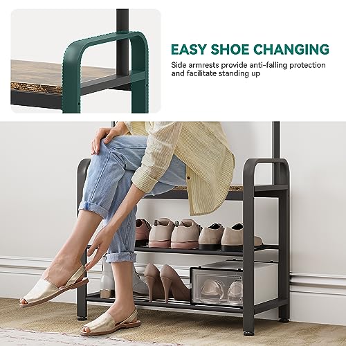 YITAHOME - YITAHOME Coat Rack Stand with Shoe Storage, Industrial Hall Tree with 7 Hooks Free Standing Coat Stands with Bench Entryway Storage Shelf for Hallway Living Room Bedroom, Metal Frame, Rustic Brown