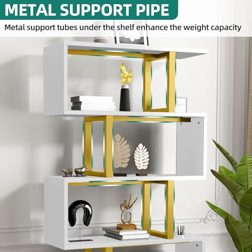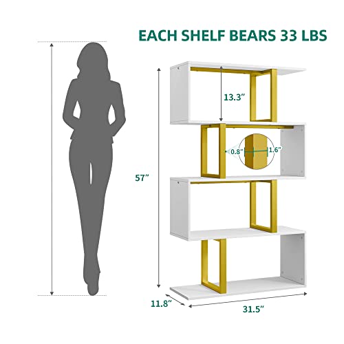 YITAHOME - YITAHOME Geometric Bookshelf, 5-Tier Bookshelf S-Shaped Bookshelves, Modern Geometric Bookcase Freestanding Multifunctional Storage Shelving for Living Room Home Office,White Gold