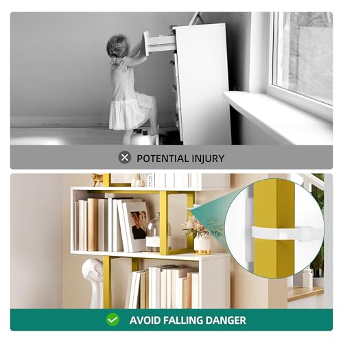 - Safety first for loved ones: Our bookcase includes anti-tip kits to securely anchor it, reducing the risk of accidents when loved ones or playful pets are nearby. Plus, non-slip footpads protect your floors from scratches