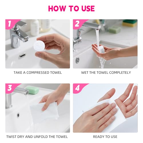 - 【EASY TO USE】Our disposable washcloths can be used with just a cup of water. You just need to put the compressed towel into the water to soak for a few seconds, the compressed towel will quickly absorb the water and expand into a large soft towel, unfolded size: 8.66 x 7.87 inches (22 x 20 cm)
