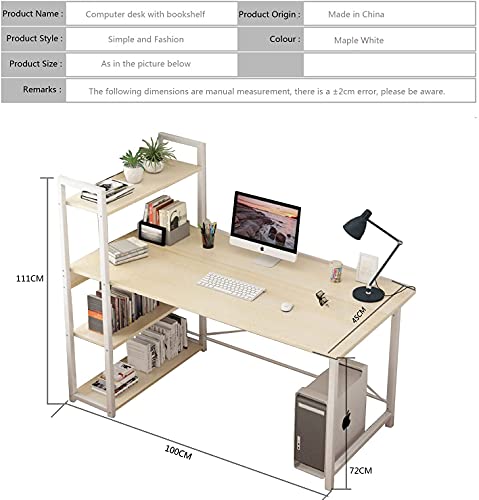 YJGET - YJGET 100 * 45cm Computer Desk with Storage Shelves Study Writing Table for Home Office, Modern Simple Style