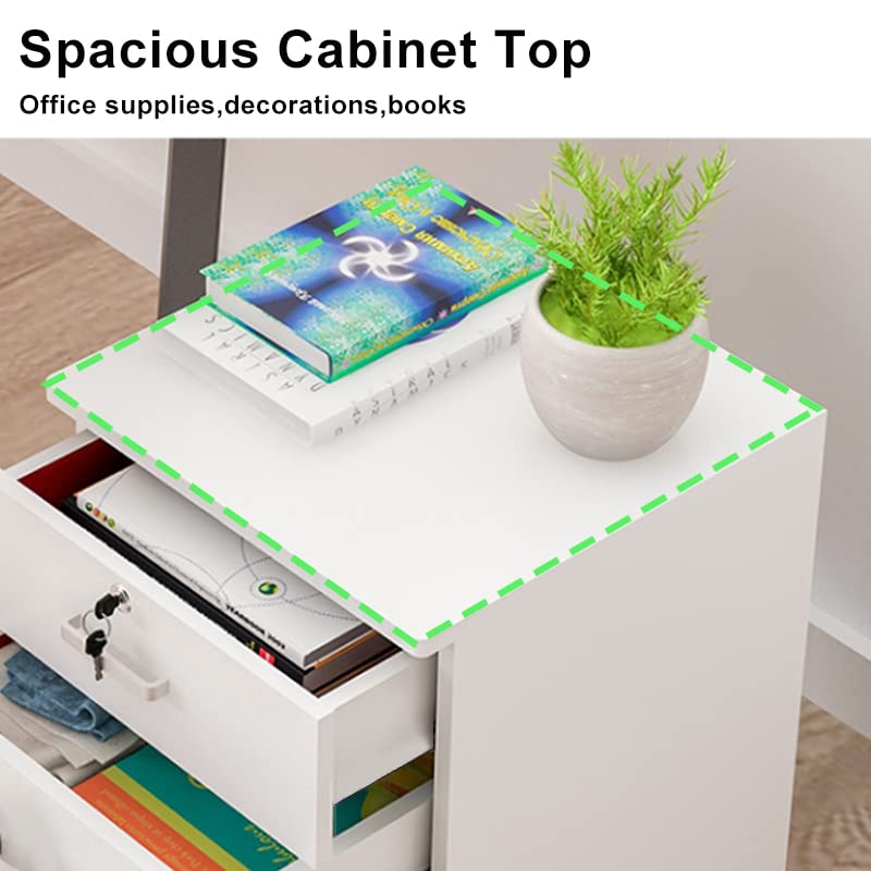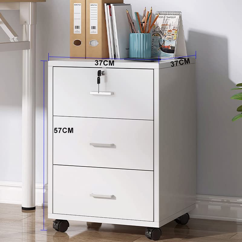 YJGET - واي جيه جي اي تي خزائن ملفات مع 3 ادراج، خزانة مكتب متنقلة مع قفل وعجلات للتخزين A4، رسائل، مجلدات، خزانة تخزين خشبية للمكتب المنزلي، ابيض، بلاستيك