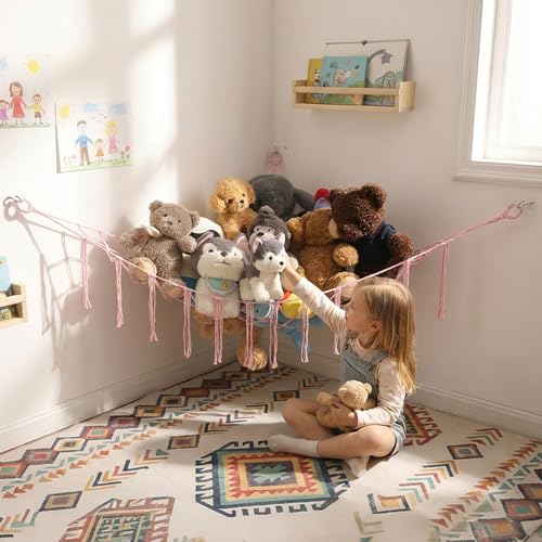 - 【شبكة لعرض الحيوانات المحشوة】شبكة الحيوانات المحشوة أو الأرجوحة هي من أفضل أفكار تخزين الحيوانات المحشوة، وتناسب الزاوية، لتوفير مساحة على الأرض وللسرير في غرفة الأطفال أو غرفة اللعب. يرجى تجربة منظم تخزين الألعاب هذا. مقارنة مع منظمات تخزين الحيوانات المحشوة الأخرى، تعتبر شبكة الزاوية لتخزين الحيوانات المحشوة مثالية، إنها أرجوحة ألعاب ممتازة لتخزين الحيوانات المحشوة.
