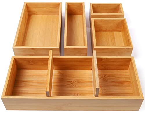 - 5 sizes: bamboo drawer organiser in 5 sizes with 2 removable dividers to keep your favourite items organised, and meet your different storage needs. 7.5 x 25 x 6.4 cm (small), 7.5 x 12.5 x 6.4 cm (extra small), 15 x 12.5 x 6.4 cm (medium), 15 x 25 x 6.4 cm (large), 15 x 37.5 x 6.4 cm (extra large).