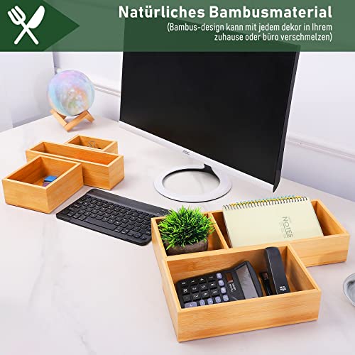 - Multifunctional bamboo drawer organiser: suitable for drawers of different sizes. You can combine these bamboo organisers as you like and place them on a drawer or table so you can quickly find the tools you need. Bamboo drawer organiser can be used to store cosmetics, tableware, office supplies and jewellery.