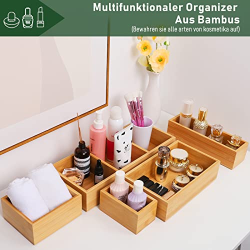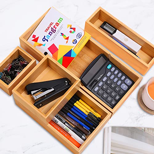 YKSLEMON - 5-Piece Kitchen Drawer Organiser for Drawers Organiser Natural Bamboo Box Drawer Insert for Dressing Table Kitchen Bathroom (Bamboo)