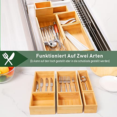 - Natural material: our cutlery box for drawers is made of high-quality, environmentally friendly bamboo, which is more durable than plastic. Natural bamboo, each bamboo board is thick and strong enough to protect your personal items.