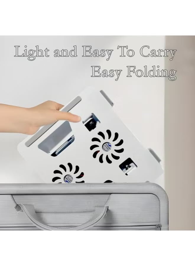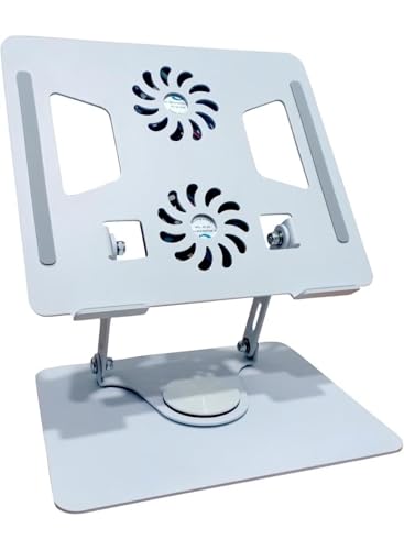Generic - YL-906 Aluminium Tabletop Laptop Stand with Double Fan 360 Degree Rotating Adjustable Ergonomic Foldable Portable Laptop Universal Holder for Notebook, Mac Book, Laptops (25-cm,Silver)