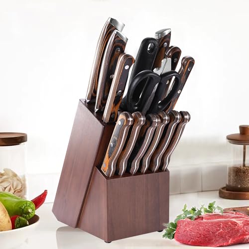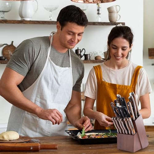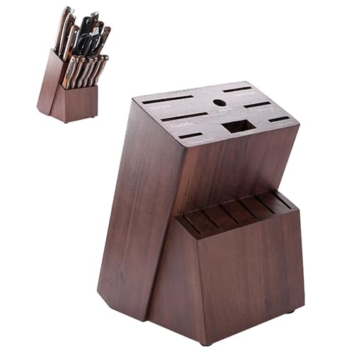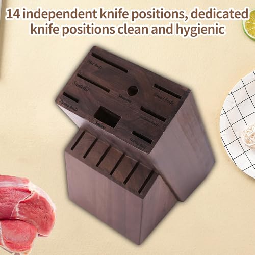 Ymcud - حامل سكاكين 14 فتحة من خشب المطاط العالمي لسطح الطاولة وتخزين السكاكين، تصميم متعدد الوظائف لسهولة التخزين في المطبخ من Ymcud