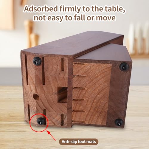 - يحتوي على سكاكين شفرة كبيرة متعددة: مصمم بفتحات أطول لاستيعاب سكاكين ذات شفرات أكبر. مناسب للسكاكين من سكاكين شريحة اللحم الصغيرة إلى سكاكين الشيف الكبيرة. تصميم الزاوية المائلة يجعل إزالة وإدخال أي سكين مطبخ أسهل بكثير.