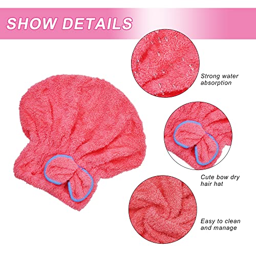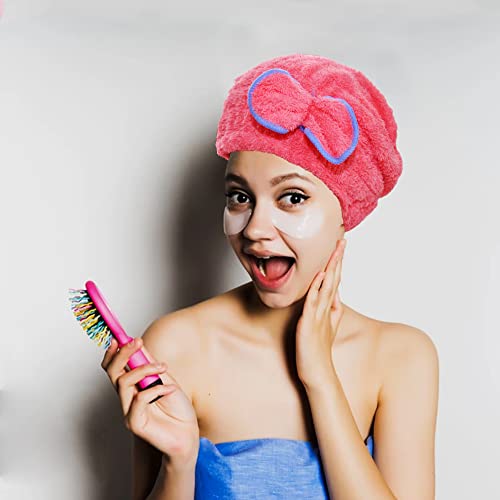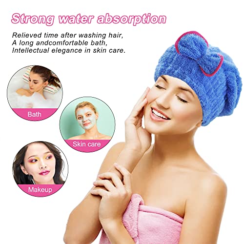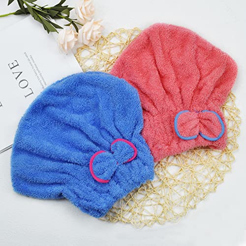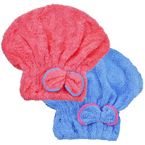 YMIFEEY - فوطة شعر مايكروفايبر لتجفيف الشعر من يميفي، فوطة تربون فائقة الامتصاص للتجفيف السريع للشعر الرطب، بتصميم كاب بحواف باستك ومزينة بفيونكة للنساء والفتيات للشعر الطويل والقصير والكثيف، قطعتين، أزرق وأحمر