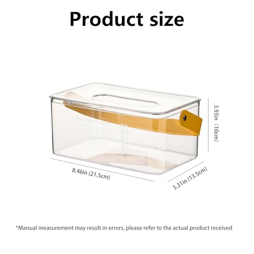 - Size - The dimensions for this clear rectangular tissue box cover are 8.46” X 5.31” X 3.94”high, it's enough to hold most standard-sized tissue paper sheets as well as stacks of individual facial napkins.
