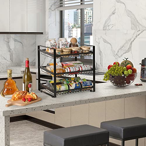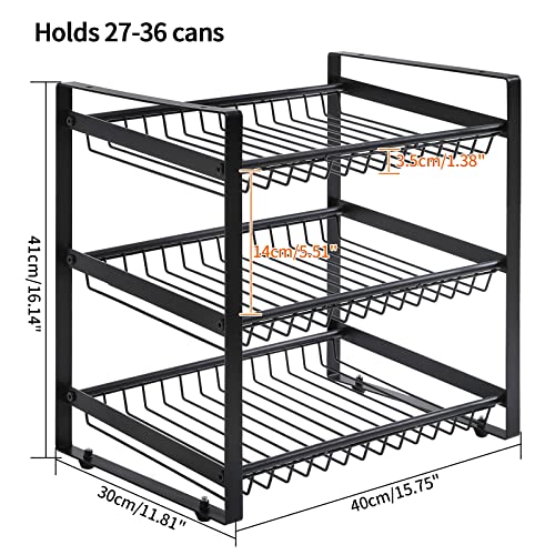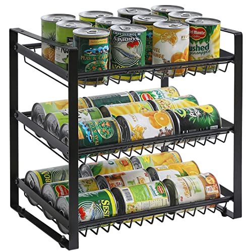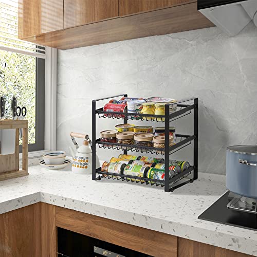 YMYNY - YMYNY 3-Tier Can Rack Organizer, Multifunctional Can Storage Dispenser, Holds Up to 36 Cans, Stacking Rack Holder for Kitchen Cabinets, Countertops, Pantry, Small Spaces, Black, HSR001H