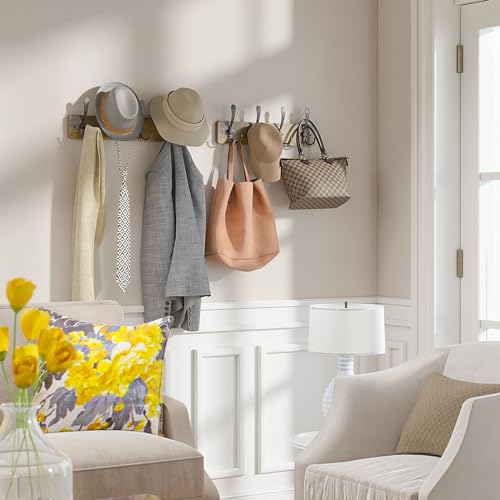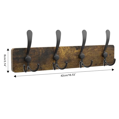 YMYNY - YMYNY Coat Rack Wall Mounted with 4 Hooks, 16.54" L Entryway Coat Hooks, 1 Pack Coat Hanger, Wall Floating Shelf with Hat Rack, for Jacket, Coat, Towel and Purse, Rustic Brown UHWS005H