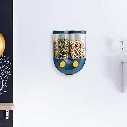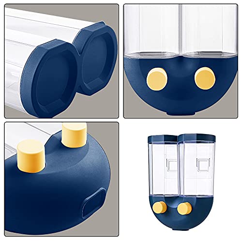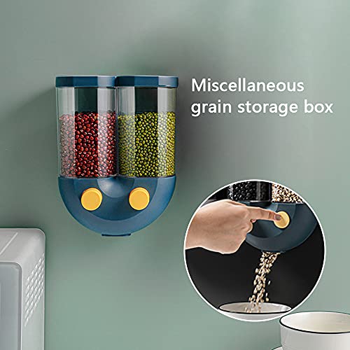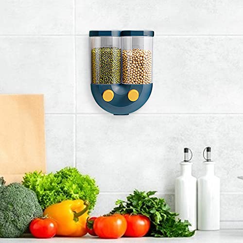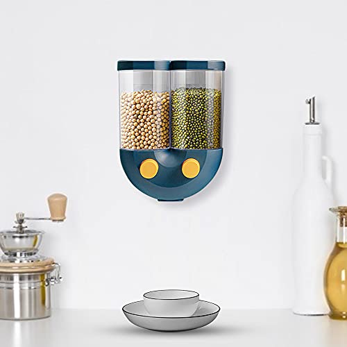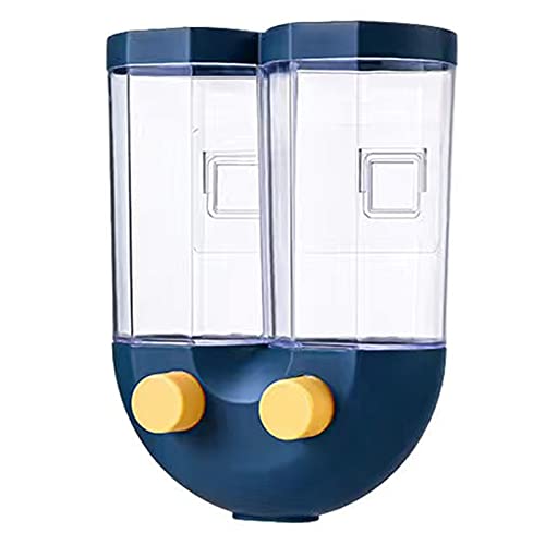 Spaceshoop - موزع حبوب من يونجفي قابل للتثبيت على الحائط، موزع تخزين حبوب مزدوج لتخزين الطعام الجاف بدون ثقب على الحائط، اكسسوار للمطبخ المنزلي (ازرق)