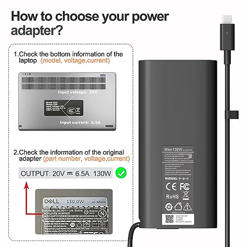 - 【السلامة والضمان】شاحن لاب توب ديل 130 واط هذا معتمد ومصمم للسلامة -