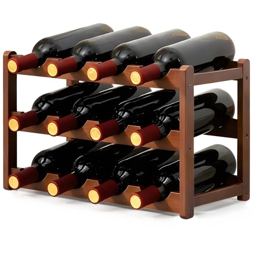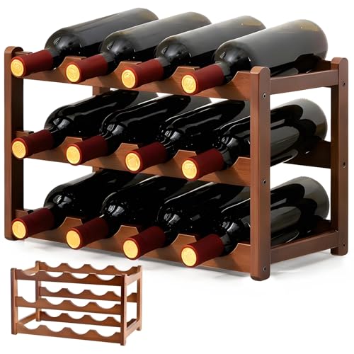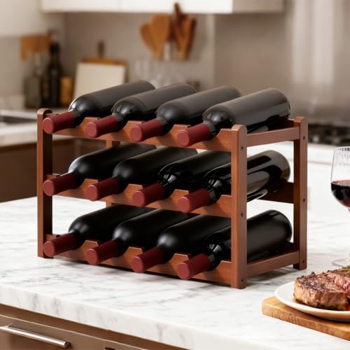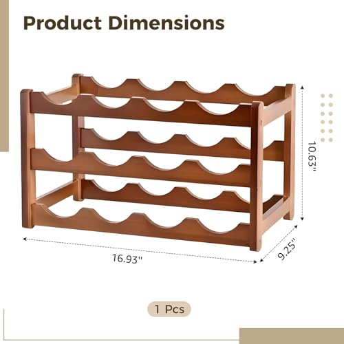 YOFAPA - رف نبيذ خشبي قائم بذاته مكون من 12 زجاجة من يوفابا، مكون من 3 طبقات بتصميم مموج لديكور المنزل (16.9 × 9.3 × 10.6 انش)