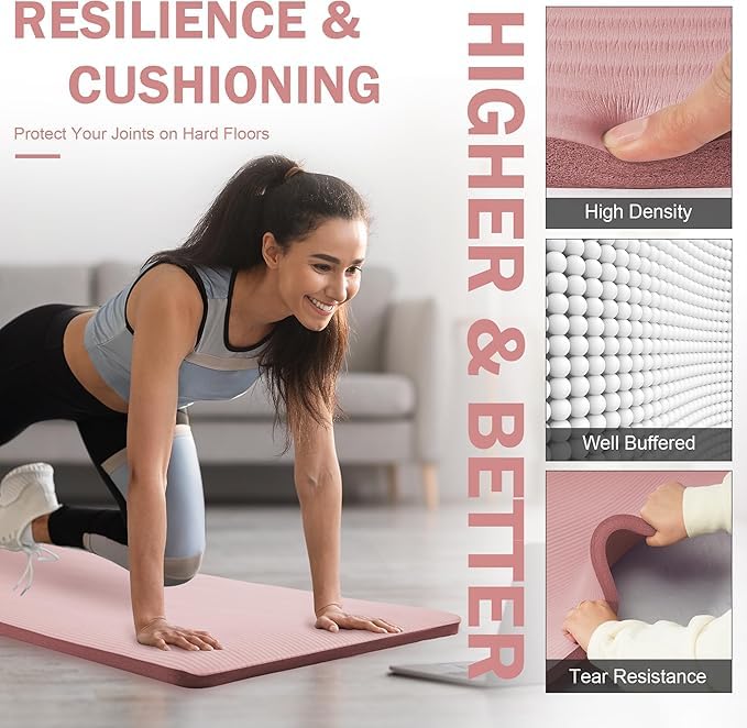 Generic - Yoga Mat 1-Inch Extra Thick High-Density Exercise Mat with Non-Slip Surface & Carry Strap for Men & Women Tear-Resistant Pilates Workout Mat for Home Gym, Floor Fitness, Pinkish