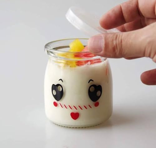 Generic - Yogurt Cups Mini Glass Cup with Lid Multipurpose Yogurt Cream Caramel Jelly Pudding Cup for Oven Microwave (200ml 4 Cups)