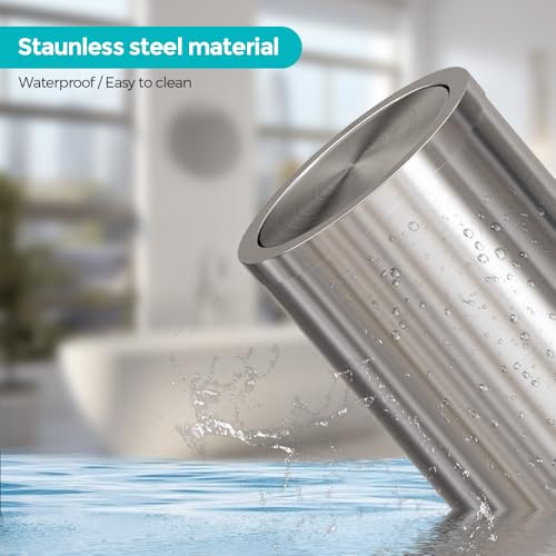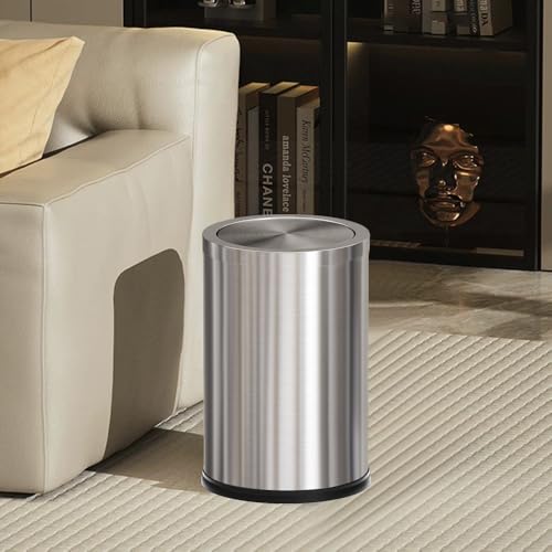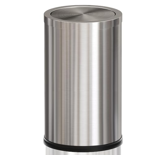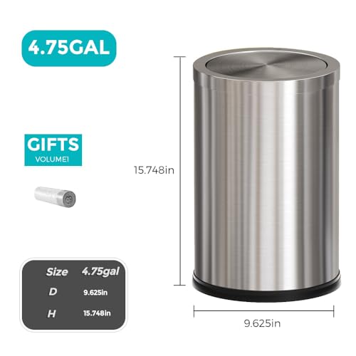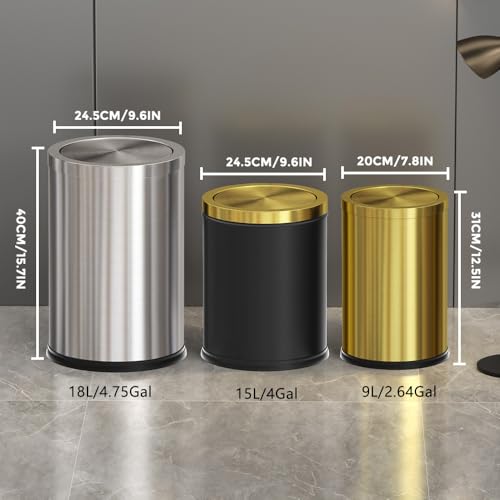 YOJIA - 4.7 Gallon/18L Stainless Steel Bathroom Trash Can,Silver Garbage Bin with Swing Lid,Round,Elegant Waste Basket,for Toilet,Kitchen,Living Room,Hotel,Home (18L-Silver)