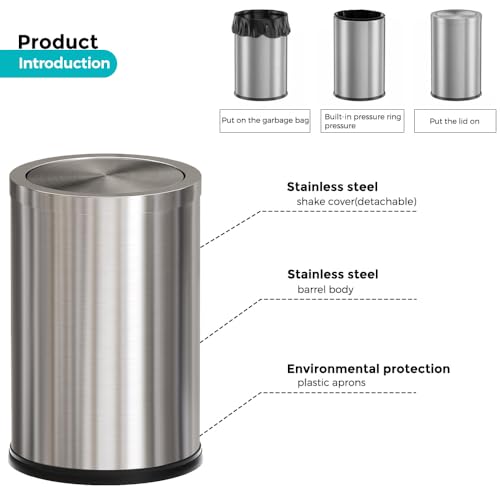 - ⛳High-Quality Material:This stainless steel trash can is made of excellent material. Stainless steel is sturdy and durable, resistant to corrosion and oxidation, and fearless of various environmental challenges.