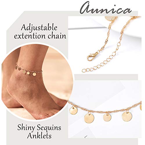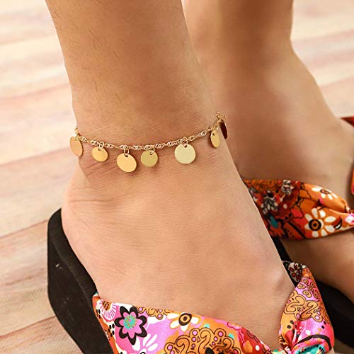 Yokawe - خلخال ذهبي مزين بالترتر من يوكاوي، سوار كاحل للصيف والشاطئ، مجوهرات قدم للنساء والبنات, free size