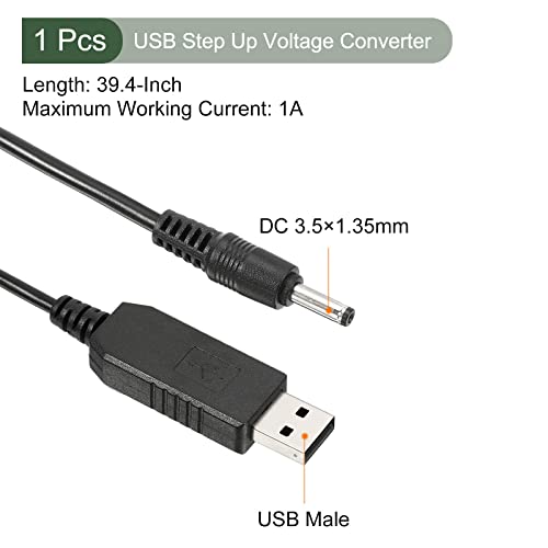 - √WHAT YOU GET - The package comes with 1pcs power cord, the total length is 1m/39.4", the wire diameter is 3.5mm/0.14", the power is 6W, the input voltage is DC5V, the output voltage is DC12V, the max output current is 1A, The connectors is USB A male to DC jack 3.5 × 1.35mm.
