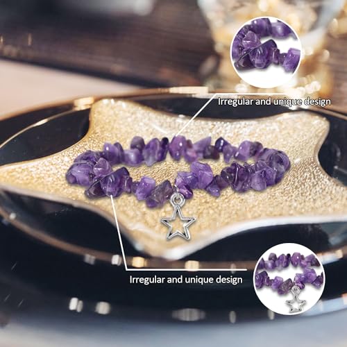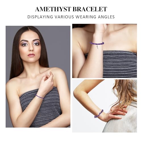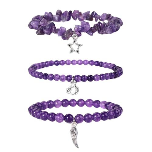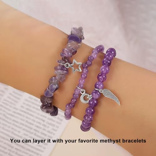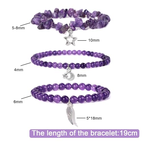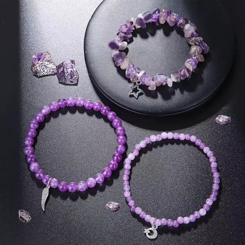 Yoljun - 3 Pcs Amethyst Bracelet, Natural Healing Crystal Bracelets Adjustable Anxiety Bracelet for Women Good Luck Purple Bracelet Gifts for Women Men