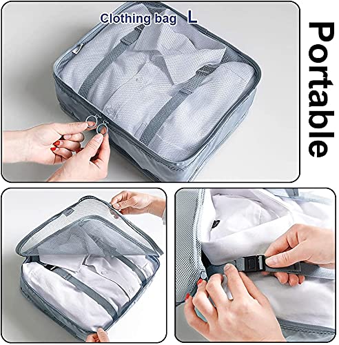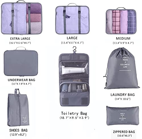 YOLOK - 8 Set Travel Packing Cubes, Luggage Organizers with Shoe Bag, Grey