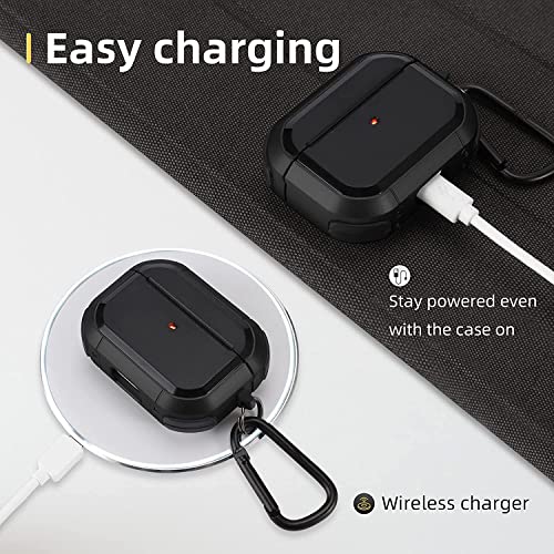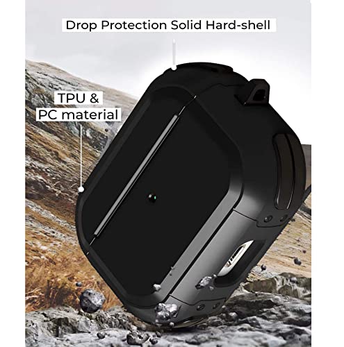 YONK - جراب ايربودز برو 2 2022 الجيل الثاني ممتص للصدمات بقفل للرجال والنساء بحلقة مفاتيح (اسود)، بولي يوريثين اللدن بالحرارة