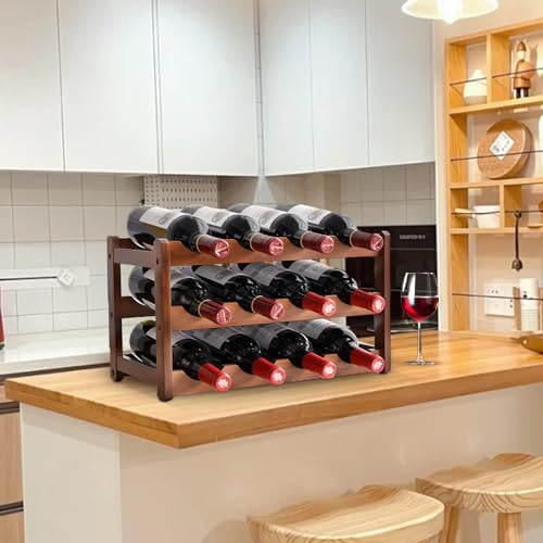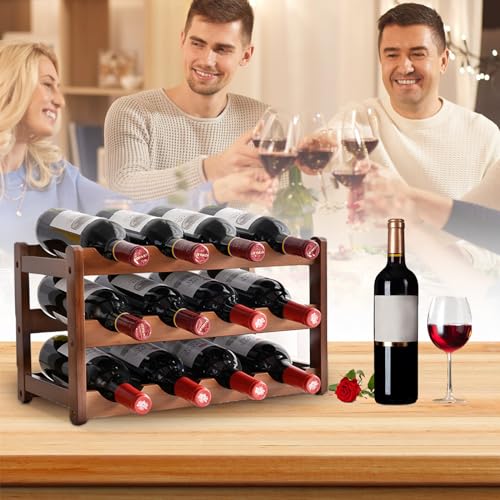 YOPOTIKA - Wine Rack,3 Tiers Wooden Rack Countertop Free Standing Holder Display Shelf,12 BottleFree Standing Wine Storage Holder for Cabinet,Cupboard,Countertop