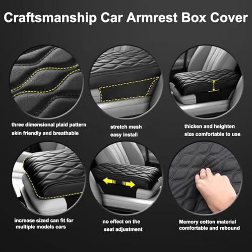 - · COMFORT: The car armrest is filled with soft and comfortable pure memory foam foam with a breathable surface, which can relieve elbow pressure while driving and give you a comfortable driving experience.