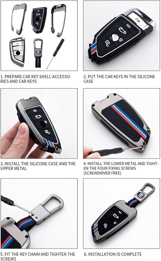 - ملاءمة سلسة، مخصصة وفقا لمفتاح السيارة الأصلي 1: 1. هيكل منفصل، سهل التركيب. يمكن للمزيج الذكي من القشرة المعدنية وغطاء مفتاح السيليكون أن يحجب حلقة حماية الإشارة التي تشكلها المعدن، ويمكن قفل الشاحنة / فتحها دون إزالة المفتاح.