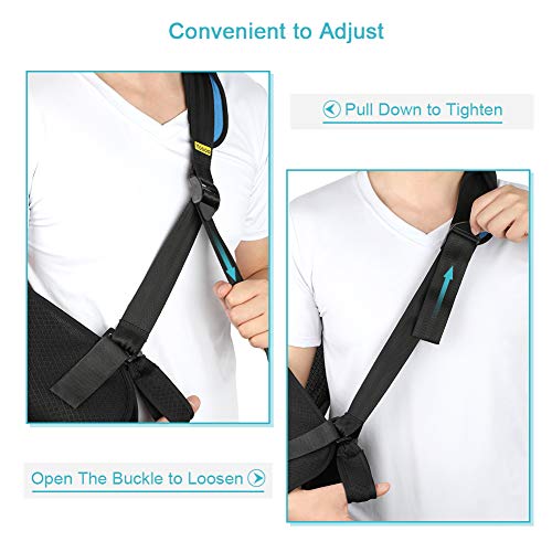 - 【تصميم بلاصق فيلكرو لسهولة الارتداء】إغلاق بخطاف وحلقة على حزام الذراع يجعل من السهل عليك الارتداء والخلع؛ توفر حلقة الإبهام دعمًا إضافيًا وثباتًا لكتفك وذراعك المصاب.