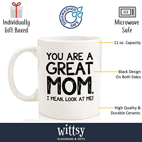 Wittsy Glassware and Gifts - You Are A Great Mom Funny Coffee Mug - Christmas Gifts for Mom, Women - Best Mom Gifts - Unique Gag Xmas Gift Idea from Daughter, Son, Child, Kids - Cool Bday Present for Mother, Her - Fun Novelty Cup