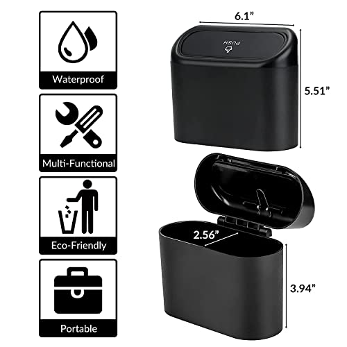 - 【High Quality】The container is made of ABS and not easy to break.Fresh dark black paint container,car trash can with lid,multifunctional,universal,durable and perfect for most cars.