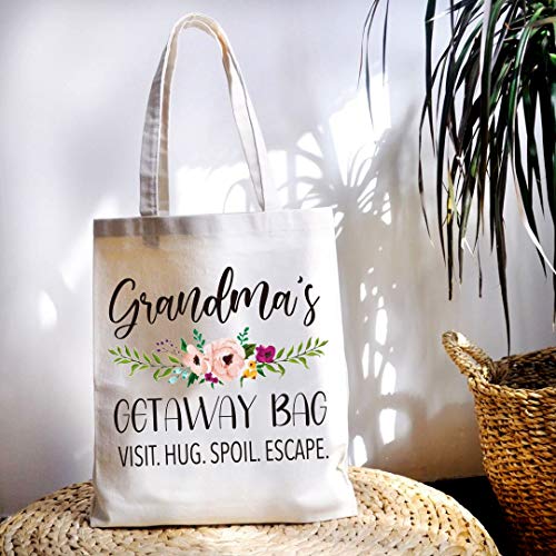 Myakako - YouFangworkshop Grandma's Gift from Granddaughter or Grandson, Reusable Cotton Canvas Tote Bag, Grandma's Getaway Bag for Grandmother Mother's Day Christmas Birthday Gift