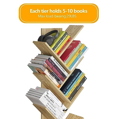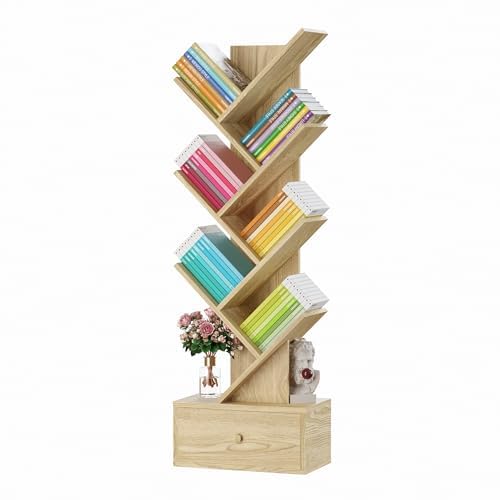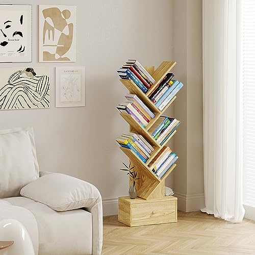 Youkia - 6 Tier Tree Bookshelf, 6 Free Standing Bookcases, Morden Wooden Tree Book Shelf with Drawer, Tall Display Utility Storage Organizer Book Shelves for Living Room, Bed Room, Office, Cedar Wood